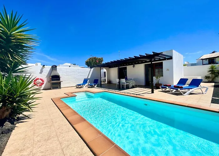 Von einer Terrasse der Villa Domingo 2 By Jk Lanzarote aus können Gäste einen Ausblick auf den Pool genießen. Die Badezimmer in der Unterkunft in Puerto del Carmen sind mit einer getrennten Toilette und einer Dusche ausgestattet. Handtücher sorgen ebenfalls für ein komfortables Erlebnis.